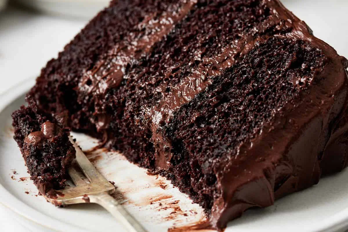 برش کیک شکلاتی با سس گاناش