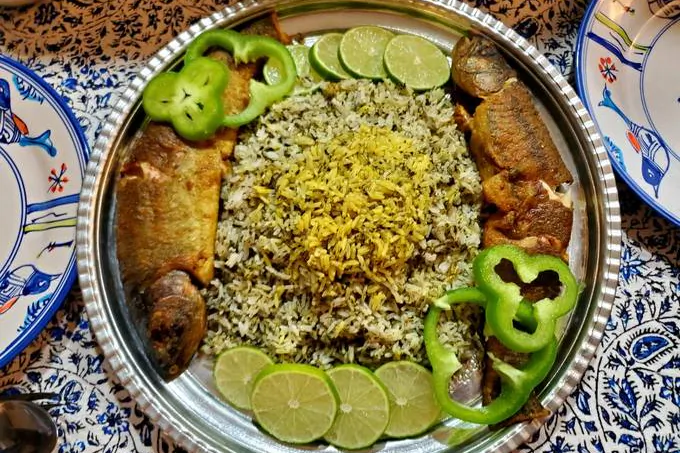 ماهی قزل آلای تازه سرخ شده به همراه برنج ایرانی و سبزی پلو