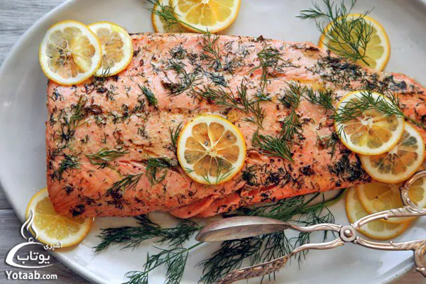 فیله ماهی سالمون کبابی با سس مخصوص و سبزیجات بخارپز