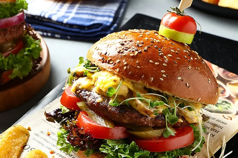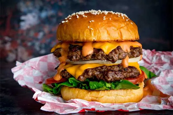 همبرگر کلاسیک با ورقه پنیر چدار
